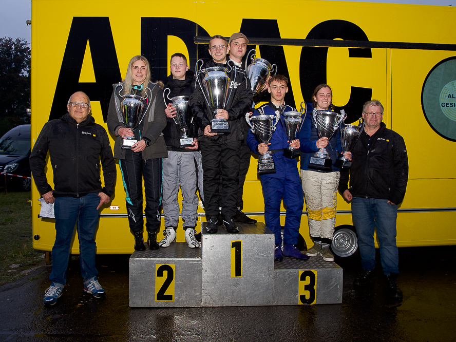 Mit der erneut schnellsten Citroën-Zeit hatten wir alles gegeben, gefühlt war das aber nicht genug. Noch auf der Rückfahrt zum Servicezelt schaute Christopher auf das Timing: Platz 7 – das könnte gerade so für das Podium gereicht haben. Doch unsere beiden Hauptkontrahenten landeten trotz Vorsprung überraschenderweise hinter uns – damit war uns plötzlich Platz 2 sicher! Paul Dreiling und Jeannette Schuhej, die mit P4 und P2 konstant und stark punkteten, schienen den Titel jedoch gewonnen zu haben. Ich wollte gerade gratulieren, wurde dann aber direkt korrigiert: Ich hatte mich im Punkteschlüssel vertan, wir lagen damit punktgleich auf Platz 1. Somit entschied die Gesamtzeit über alle vier Prüfungen: Mit gerade einmal 1,3 Sekunden Vorsprung konnten wir das Finale somit für uns entscheiden! Ich kann es immer noch nicht ganz fassen…